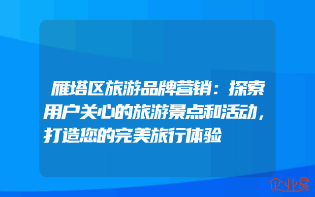 - 雁塔区旅游品牌营销:探索用户关心的旅游景点和活动,打造您的完美旅行体验