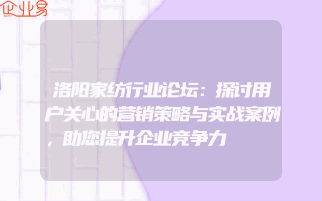 - 洛阳家纺行业论坛:探讨用户关心的营销策略与实战案例,助您提升企业竞争力