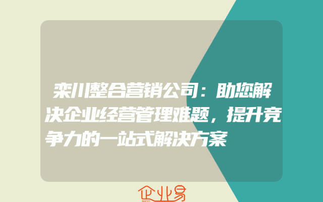 - 栾川整合营销公司:助您解决企业经营管理难题,提升竞争力的一站式解决方案