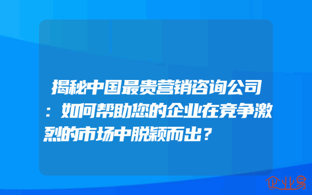 - 揭秘中国最贵营销咨询公司:如何帮助您的企业在竞争激烈的市场中脱颖而出?