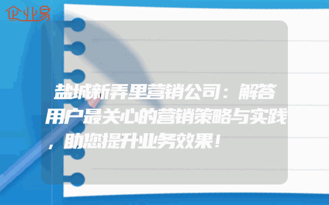 - 盐城新弄里营销公司:解答用户最关心的营销策略与实践,助您提升业务效果!