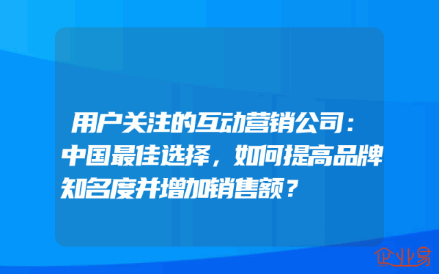 - 用户关注的互动营销公司:中国最佳选择,如何提高品牌知名度并增加销售额?