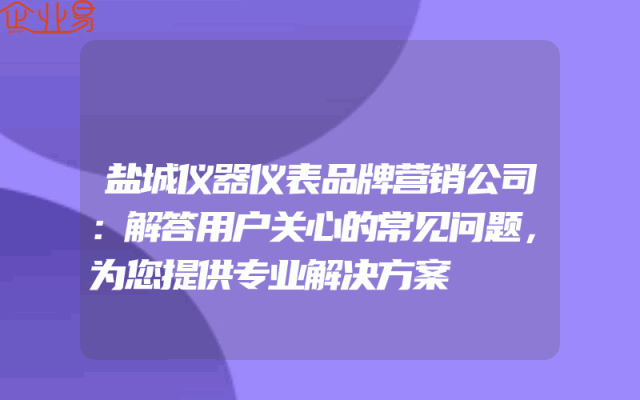 - 盐城仪器仪表品牌营销公司:解答用户关心的常见问题,为您提供专业解决方案
