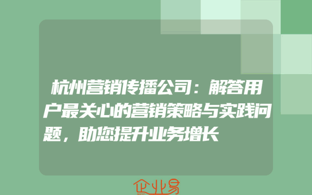 - 杭州营销传播公司:解答用户最关心的营销策略与实践问题,助您提升业务增长