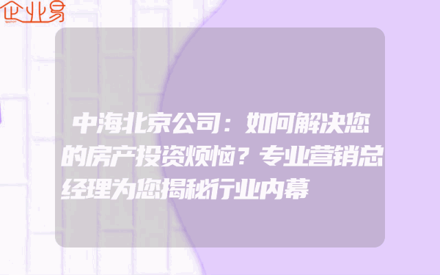 - 中海北京公司:如何解决您的房产投资烦恼?专业营销总经理为您揭秘行业内幕