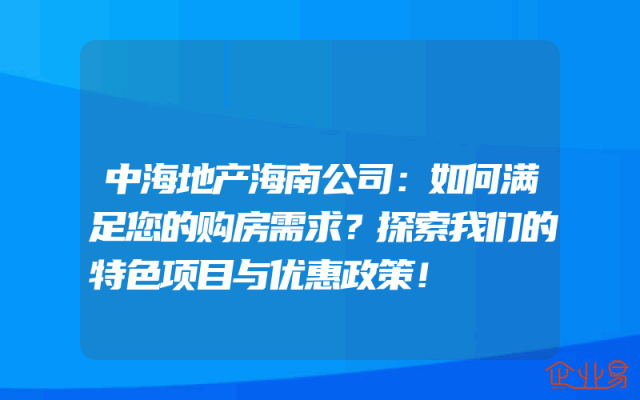 - 中海地产海南公司:如何满足您的购房需求?探索我们的特色项目与优惠政策!