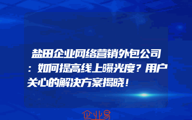 - 盐田企业网络营销外包公司:如何提高线上曝光度?用户关心的解决方案揭晓!