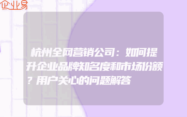 - 杭州全网营销公司:如何提升企业品牌知名度和市场份额?用户关心的问题解答