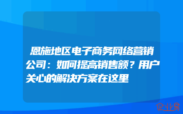 - 恩施地区电子商务网络营销公司:如何提高销售额?用户关心的解决方案在这里
