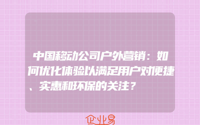 - 中国移动公司户外营销:如何优化体验以满足用户对便捷、实惠和环保的关注?
