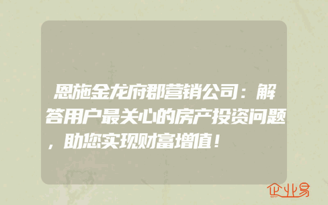 - 恩施金龙府郡营销公司:解答用户最关心的房产投资问题,助您实现财富增值!