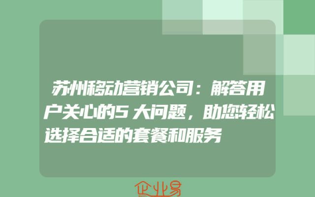 - 苏州移动营销公司:解答用户关心的5大问题,助您轻松选择合适的套餐和服务