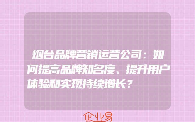 - 烟台品牌营销运营公司:如何提高品牌知名度、提升用户体验和实现持续增长?