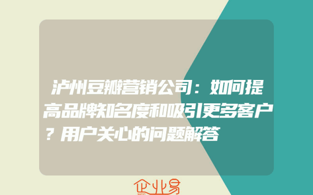 - 泸州豆瓣营销公司:如何提高品牌知名度和吸引更多客户?用户关心的问题解答
