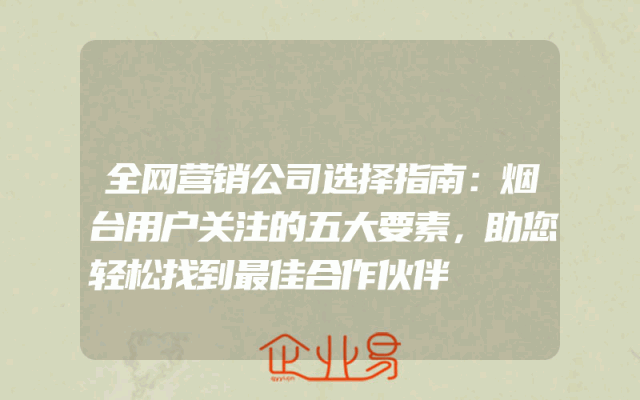 - 全网营销公司选择指南:烟台用户关注的五大要素,助您轻松找到最佳合作伙伴