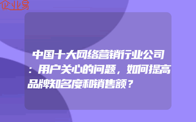 - 中国十大网络营销行业公司:用户关心的问题,如何提高品牌知名度和销售额?