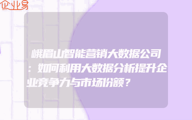 - 峨眉山智能营销大数据公司:如何利用大数据分析提升企业竞争力与市场份额?