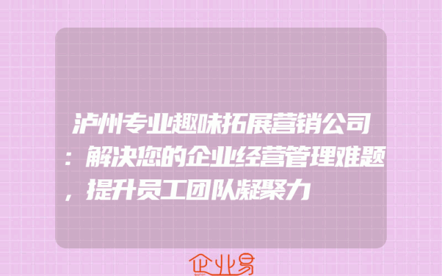 - 泸州专业趣味拓展营销公司:解决您的企业经营管理难题,提升员工团队凝聚力