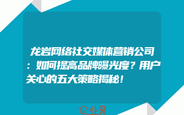 - 龙岩网络社交媒体营销公司:如何提高品牌曝光度?用户关心的五大策略揭秘!