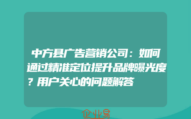 - 中方县广告营销公司:如何通过精准定位提升品牌曝光度?用户关心的问题解答