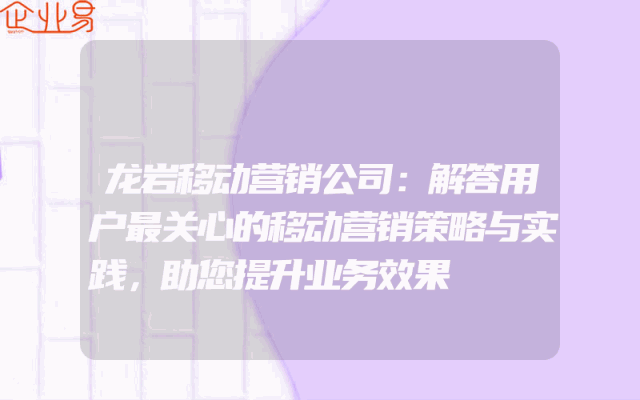 - 龙岩移动营销公司:解答用户最关心的移动营销策略与实践,助您提升业务效果