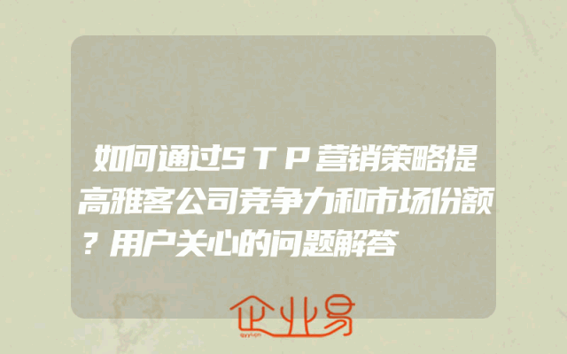 - 如何通过STP营销策略提高雅客公司竞争力和市场份额?用户关心的问题解答