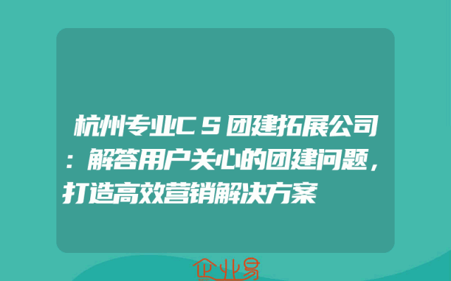 - 杭州专业CS团建拓展公司:解答用户关心的团建问题,打造高效营销解决方案