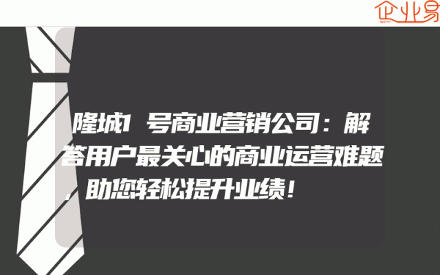 - 隆城1号商业营销公司:解答用户最关心的商业运营难题,助您轻松提升业绩!