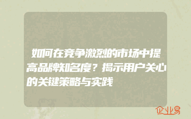 - 如何在竞争激烈的市场中提高品牌知名度?揭示用户关心的关键策略与实践