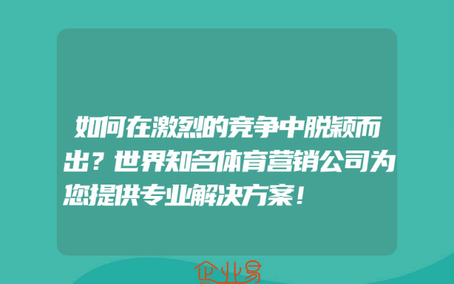 - 如何在激烈的竞争中脱颖而出?世界知名体育营销公司为您提供专业解决方案!