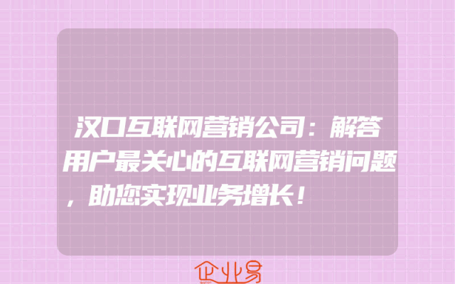- 汉口互联网营销公司:解答用户最关心的互联网营销问题,助您实现业务增长!