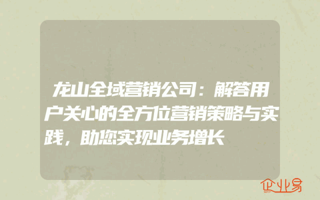 - 龙山全域营销公司:解答用户关心的全方位营销策略与实践,助您实现业务增长