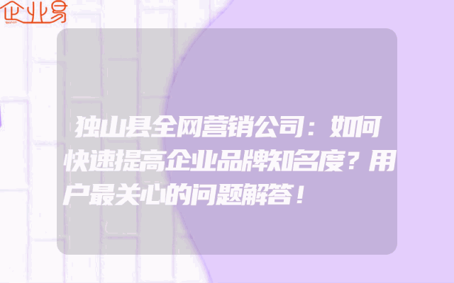 - 独山县全网营销公司:如何快速提高企业品牌知名度?用户最关心的问题解答!