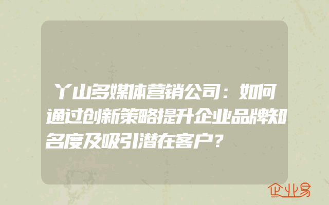 - 丫山多媒体营销公司:如何通过创新策略提升企业品牌知名度及吸引潜在客户?