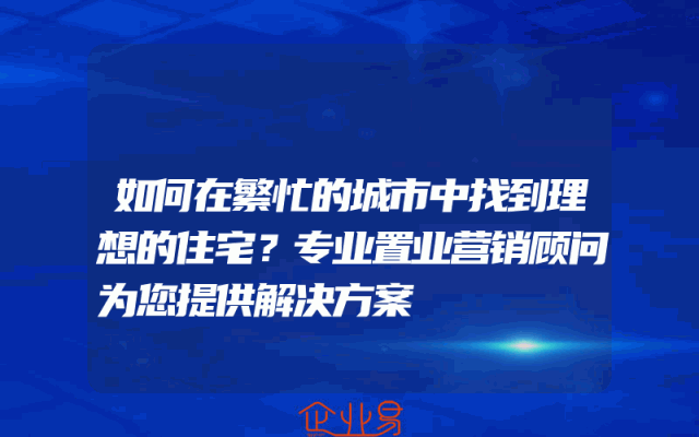 - 如何在繁忙的城市中找到理想的住宅?专业置业营销顾问为您提供解决方案
