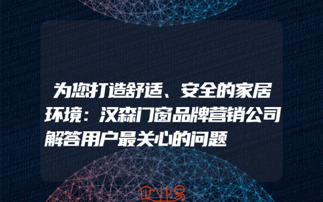 - 为您打造舒适、安全的家居环境:汉森门窗品牌营销公司解答用户最关心的问题