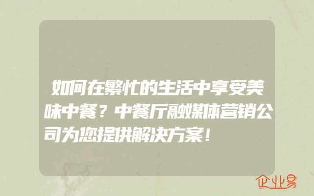- 如何在繁忙的生活中享受美味中餐?中餐厅融媒体营销公司为您提供解决方案!