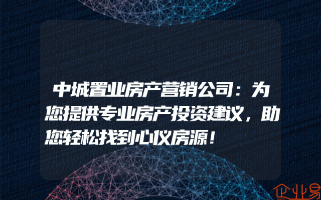 - 中城置业房产营销公司:为您提供专业房产投资建议,助您轻松找到心仪房源!