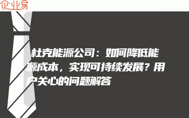 - 杜克能源公司:如何降低能源成本,实现可持续发展?用户关心的问题解答