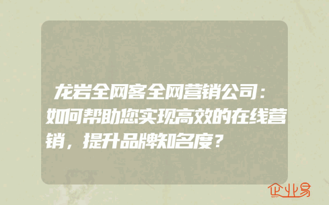 - 龙岩全网客全网营销公司:如何帮助您实现高效的在线营销,提升品牌知名度?