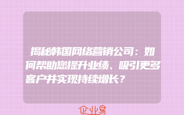- 揭秘韩国网络营销公司:如何帮助您提升业绩、吸引更多客户并实现持续增长?