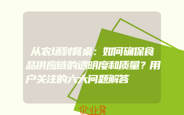- 从农场到餐桌:如何确保食品供应链的透明度和质量?用户关注的六大问题解答