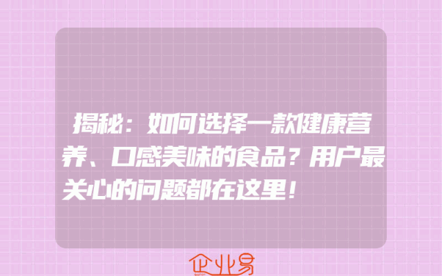 - 揭秘:如何选择一款健康营养、口感美味的食品?用户最关心的问题都在这里!