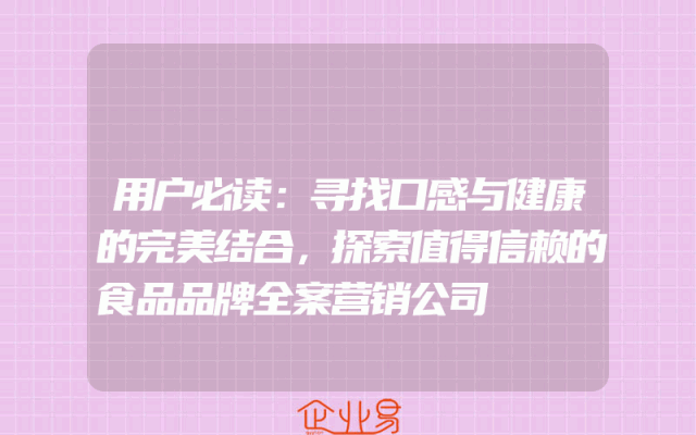 - 用户必读:寻找口感与健康的完美结合,探索值得信赖的食品品牌全案营销公司