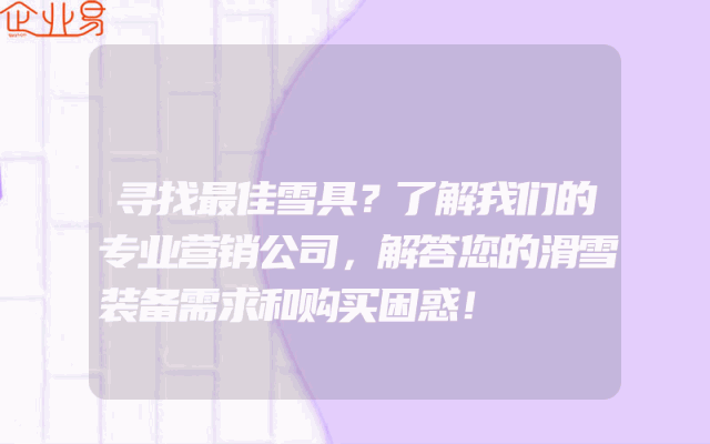 - 寻找最佳雪具?了解我们的专业营销公司,解答您的滑雪装备需求和购买困惑!对于热爱滑雪的人士来说,选择一套合适的滑雪装备是至关重要的。无论是初学者还是专业运动员,都需要高质量的装备来保证安全和舒适性。然而,面对市场上琳琅满目的滑雪装备,很多人会