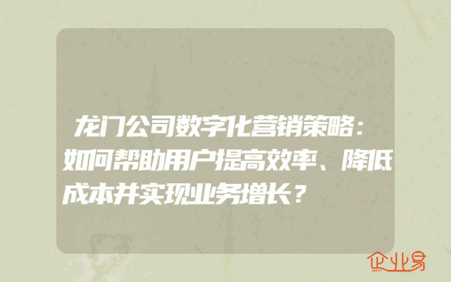 - 龙门公司数字化营销策略:如何帮助用户提高效率、降低成本并实现业务增长?