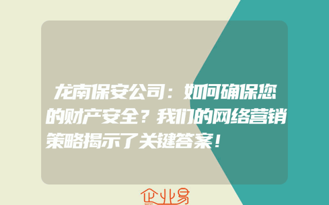 - 龙南保安公司:如何确保您的财产安全?我们的网络营销策略揭示了关键答案!