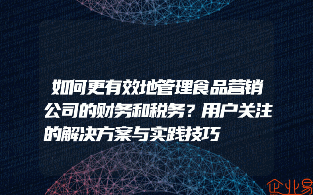 - 如何更有效地管理食品营销公司的财务和税务?用户关注的解决方案与实践技巧
