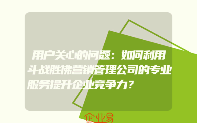 - 用户关心的问题:如何利用斗战胜佛营销管理公司的专业服务提升企业竞争力?