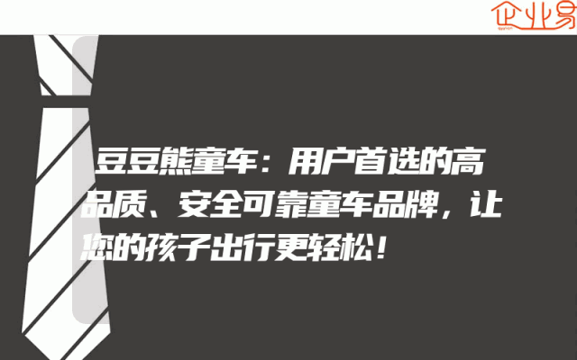 - 豆豆熊童车:用户首选的高品质、安全可靠童车品牌,让您的孩子出行更轻松!